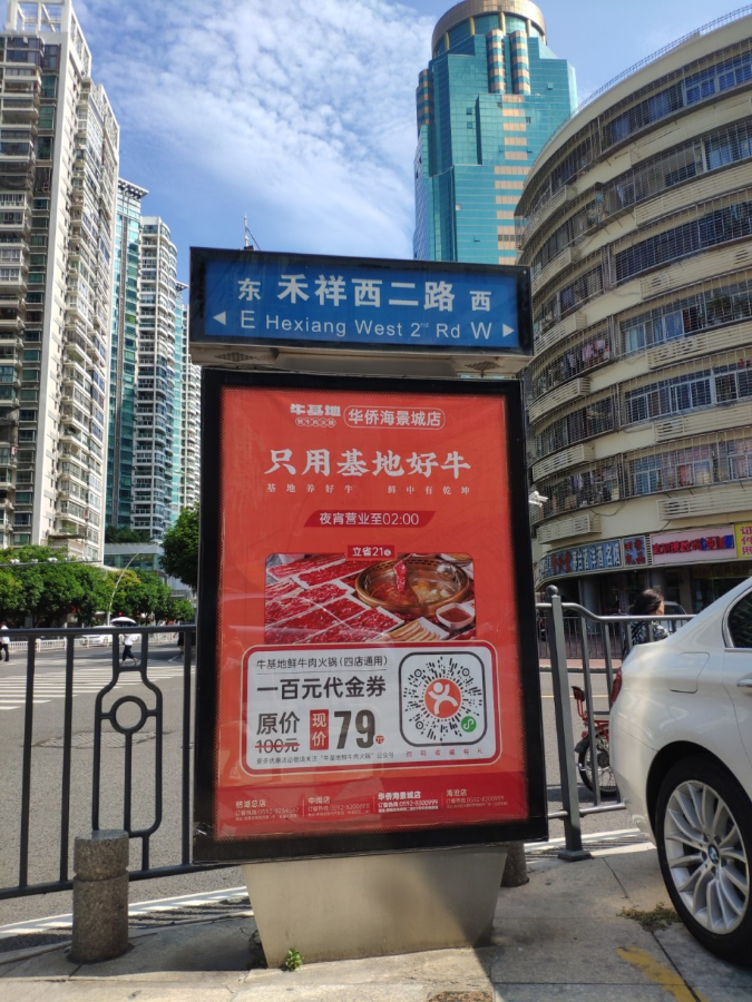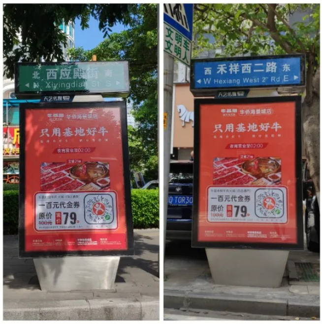 牛基地與天藝傳媒強(qiáng)強(qiáng)聯(lián)手,精準(zhǔn)宣傳將牛基地華僑海景城店附近的城市路名牌戶外媒體進(jìn)行定點(diǎn)宣傳。