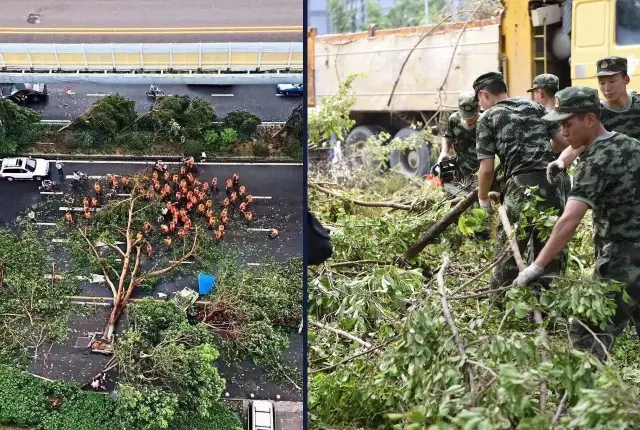 臺(tái)風(fēng)過后的幾天,廈門的大街小巷隨處可見兵哥哥忙碌的身影,一抹抹橄欖綠溫暖著這座城市,一個(gè)個(gè)疲憊的身影也震撼著我們的心靈: