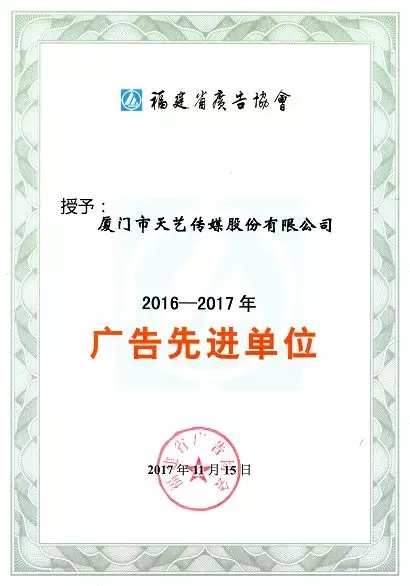 日前,在國家工商行政管理總局辦公廳出臺的《關(guān)于進一步推進廣告業(yè)創(chuàng)新創(chuàng)業(yè)有關(guān)工作的通知》(辦字【2017】209)中,由廈門市天藝傳媒股份有限公司創(chuàng)辦的“天藝文創(chuàng)孵化基地”被評定為國家級廣告業(yè)創(chuàng)新創(chuàng)業(yè)示范基地,成為廈門市2017年度唯一一家獲評廣告業(yè)創(chuàng)新發(fā)展優(yōu)秀典型企業(yè)的單位。